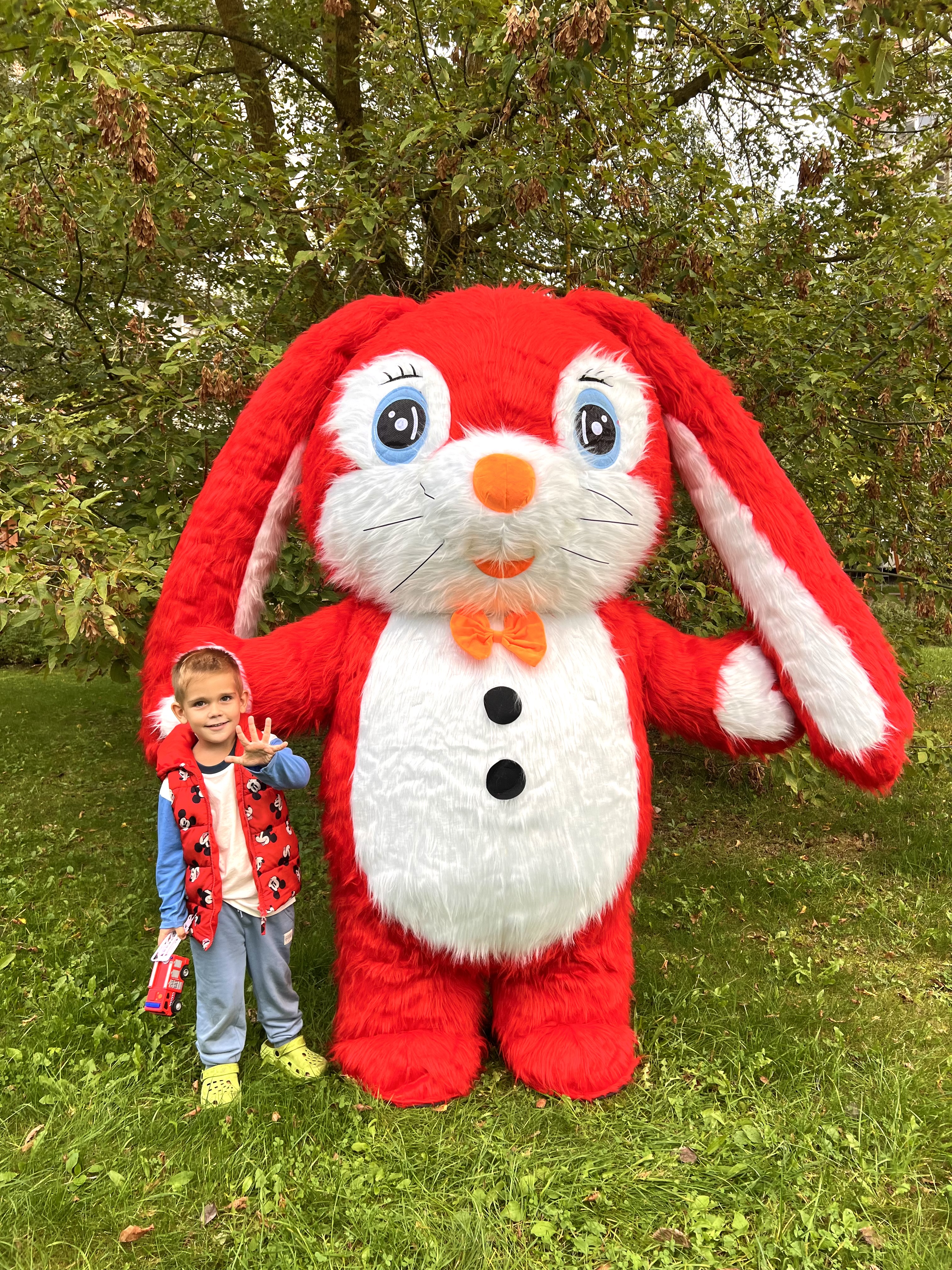 Naš zeko visok 2 metra doći će da čestita vama i vašim prijateljima na bilo kojoj proslavi — rođendanu, imendanu, događaju, svadbi, godišnjici, kao i da vas dočeka na aerodromu. Zeko će se pojaviti na događaju sa poklonom u vidu balona, ili možete predati bilo koji poklon, a zeko će ga uručiti slavljeniku. U program su uključene tri plesne pesme koje možete izabrati po svom ukusu ili nam možete verovati na reč. Zeko na dečijem rođendanu ili proslavi za odrasle izaziva pravu buru oduševljenja i divljenja već od prvih minuta. Pored toga, zeko veoma voli da se fotografiše i sigurno će organizovati foto-sesiju sa vama i vašim gostima. Susret sa zekoom biće pravi poklon. Ako želite da zapamtite emocije, naručite zeku.