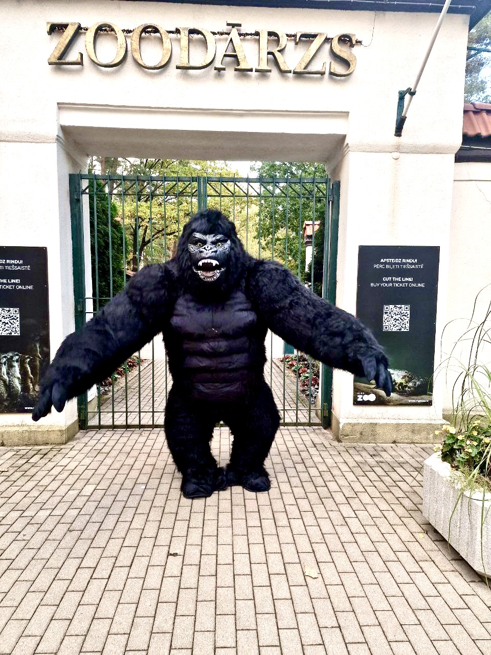 Naša gorila visoka 2.6 metara doći će da čestita vama i vašim prijateljima na bilo kojoj proslavi — rođendanu, imendanu, događaju, svadbi, godišnjici, kao i da vas dočeka na aerodromu. Gorila će se pojaviti na događaju sa poklonom u vidu balona, ili možete predati bilo koji poklon, a gorila će ga uručiti slavljeniku. U program su uključene tri plesne pesme koje možete izabrati po svom ukusu ili prepustiti izbor nama. Gorila na dečijem rođendanu ili proslavi za odrasle izaziva pravu buru oduševljenja i radosti već od prvih minuta. Pored toga, gorila voli da se fotografiše i sigurno će organizovati foto-sesiju sa vama i vašim gostima. Susret sa gorilom biće pravi poklon. Ako želite da sačuvate uspomene i emocije — naručite gorilu.